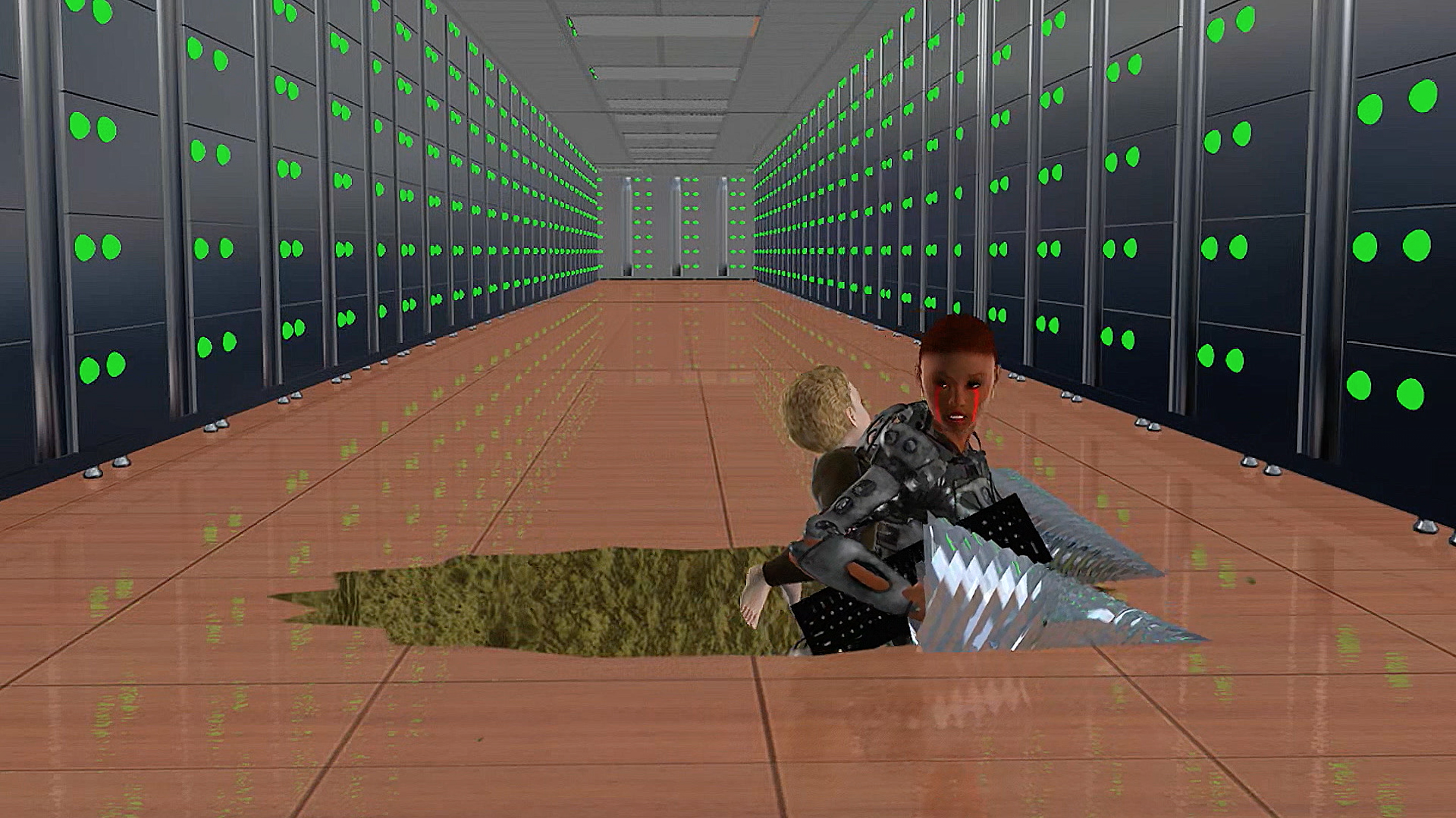 Jon Rafman is carrying forward the tradition of the Romantic explorer into new virtual worlds in this hour-long series of freeform narratives created by hobbyist CG animation softwares. In the video, two female protagonists embark upon a Dantean journey across strange landscapes and phantasmagorical spaces, encountering a host of recurring characters; often hybrids between human, monster and animal. Unconscious fantasies find voice through the vernacular of virtual worlds, as primeval, libidinous encounters unfold in a series of surreal sequences. The film is scored by experimental musicians Oneohtrix Point Never and James Ferraro.