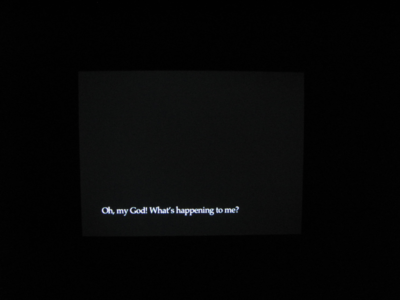 This condition, which the Situationists long ago diagnosed as symptomatic of consumer capital, and which Deleuze and Guattari identified as in itself schizogenic, becomes more apparent with each passing year. If we were to reformulate the thinking of these French intellectuals in the guise of a species of second-rate science fiction speculation, we might describe capital as a virus capable of penetrating our cognitive boundaries, turning subject-object relations inside out. One might characterize the resulting human subject as a bricolleur assembling identity out of the flotsam and jetsam of media. Vetterstad has diagnosed the condition, creating a kind of Situationist sci-fi noir film where the inherent visuality of the Spectacle has been suppressed and its banality foregrounded; a world where everything is black except the subtitles. Thus we are free to project our own dis-simulations onto a pastiche of cult Hollywood films, documentaries, soap operas, and anonymous horror pabulum. Here dream logic is regnant, yet what is remarkable is how the fantasies Vetterstad articulates appear banal. This banality underscores how much electronic media (and consumer society) feeds on infantile fantasies of omnipotence—the type which can abide destruction more than sublimation or deferral. Hence, borrowing from Baudrillard, this is “a fatal vision of the banal.” And in our contemporary world banality has grown prodigious.