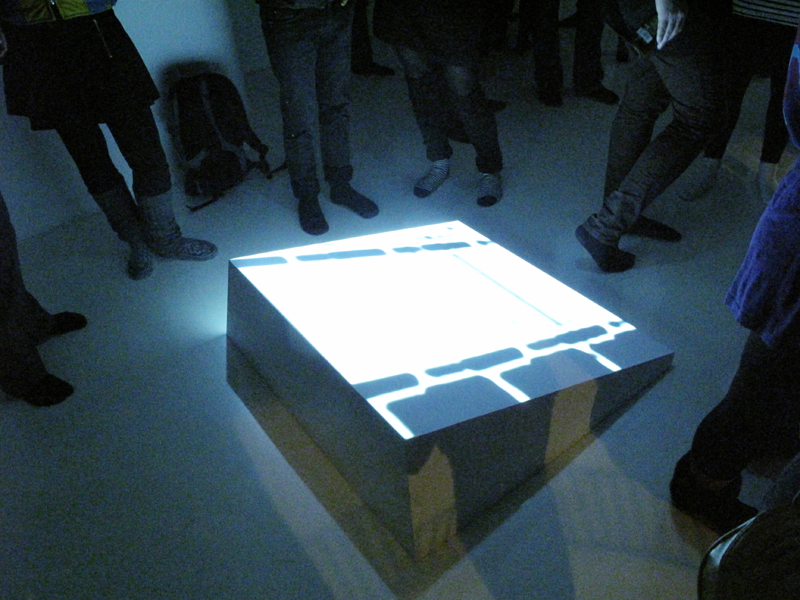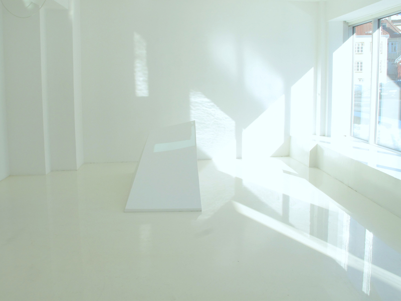 This non-narrative approach to video has taken the work in a more spatial direction, making the common way of presenting video, on a monitor or by wall projection, inadequate. The solution became a spatial meeting between solid sculptural elements and floating video surfaces, where the fusions can be seen as «presences» within a defined space. In a similar approach as to video, the artist lets these sculptures take shape through experiments and by playing around with material, using mostly pieces of paper that are folded and shaped until an interesting form emerges. These shapes are then scaled up and constructed mainly in wood, with a lot of time and attention put into making the once fragile paper shape appear in a solid form.