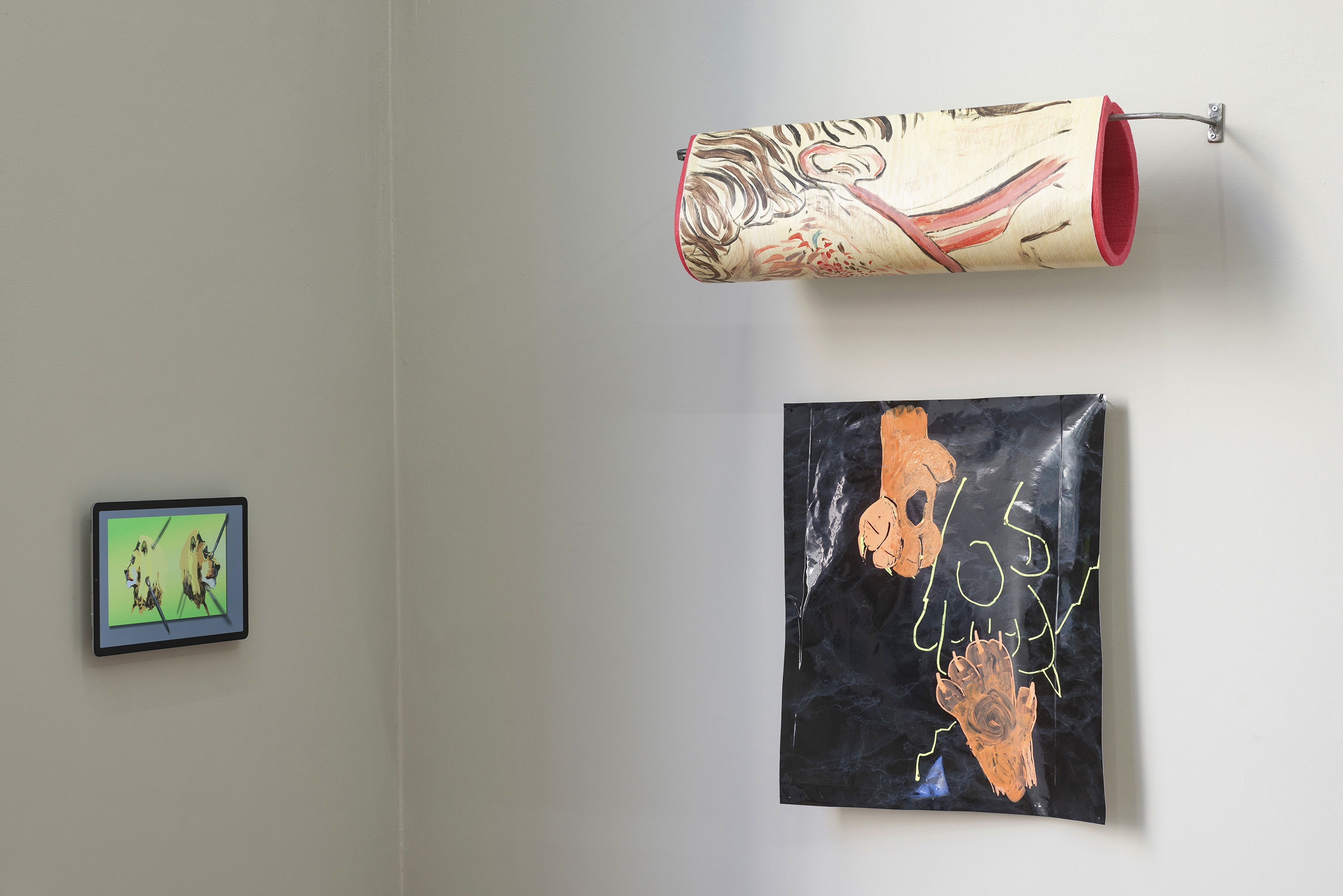 Sara Wolfert, Ear Channel (2017), mixed material (above), Grip (2019), drawing on vinyl (under).